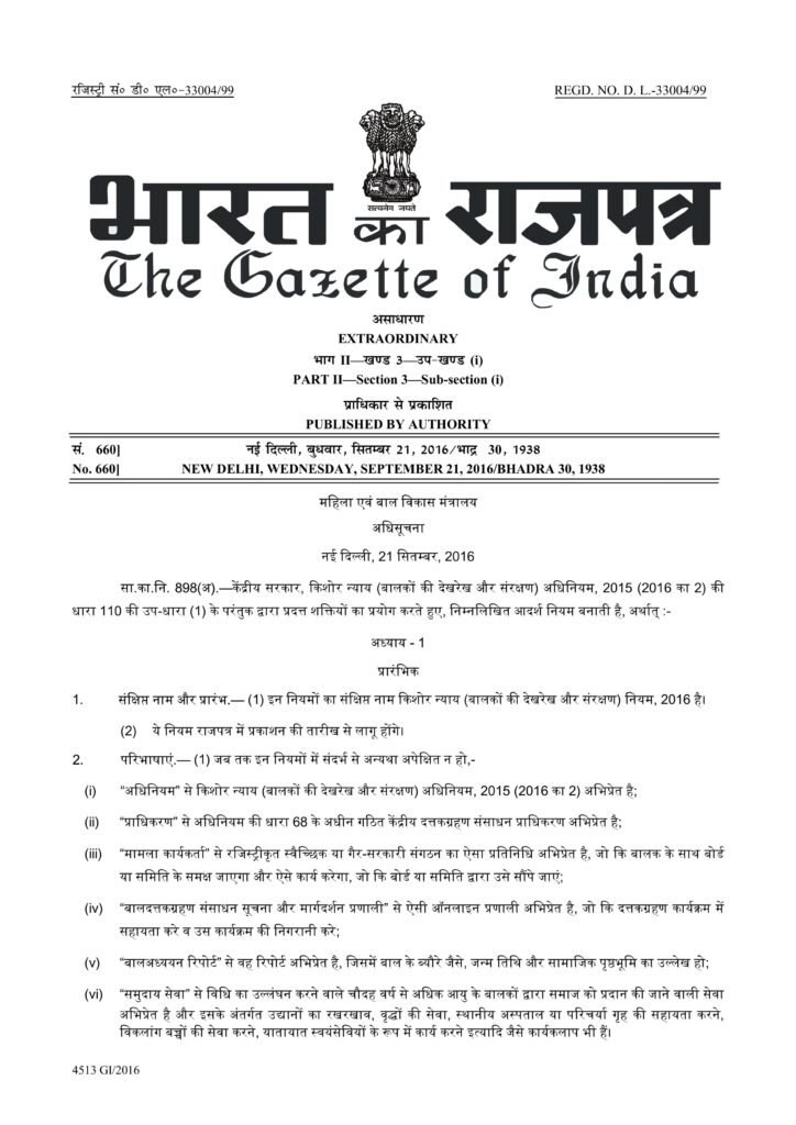 Juvenile Justice Model Rules, Ministry of Women and Child Development, 2016