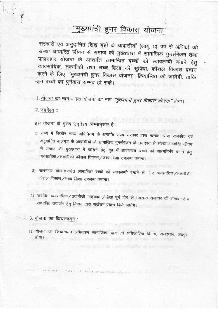 Mukhyamantri Hunar Vikas Yojana, Rasjasthan