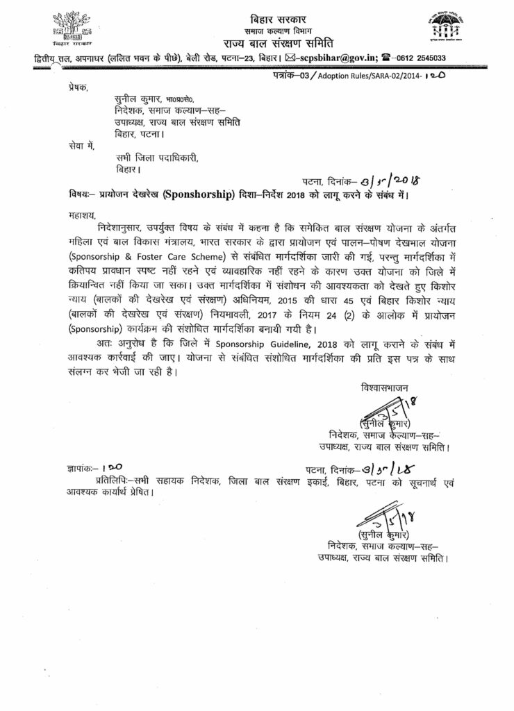 Sponsorship Guidelines, 2018 Bihar